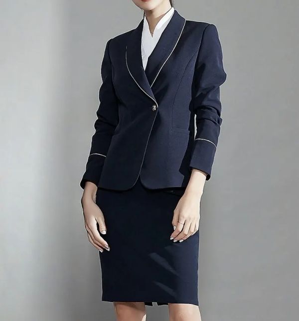 時尚職業(yè)裝注重“版形的創(chuàng)新、細節(jié)的突顯、穿著的合體”。小細節(jié)的稍作改良創(chuàng)新,更顯活力而不失時尚。版形以意式收身版形為主、講究領口、袖口、面料的筆挺,讓人顯得更筆挺、利索,精神。